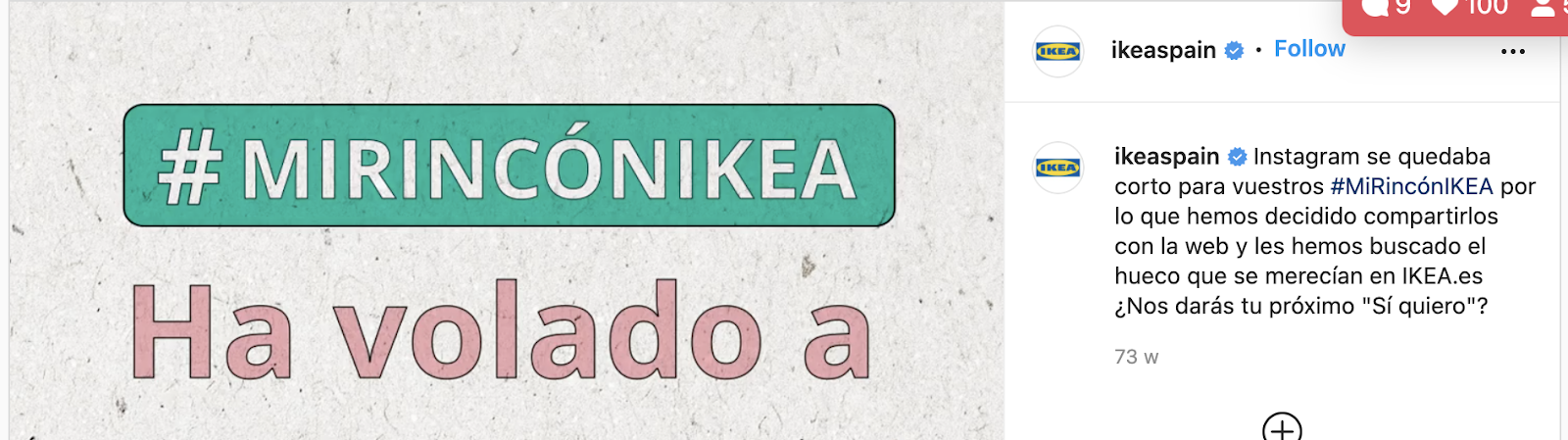 With an eye for diversity and authenticity, IKEA Spain has created an Instagram post to clearly communicate their branded hashtag and emphasize their official website where their community’s photos get featured. The Swedish furniture brand continues to make a great impression on their community.