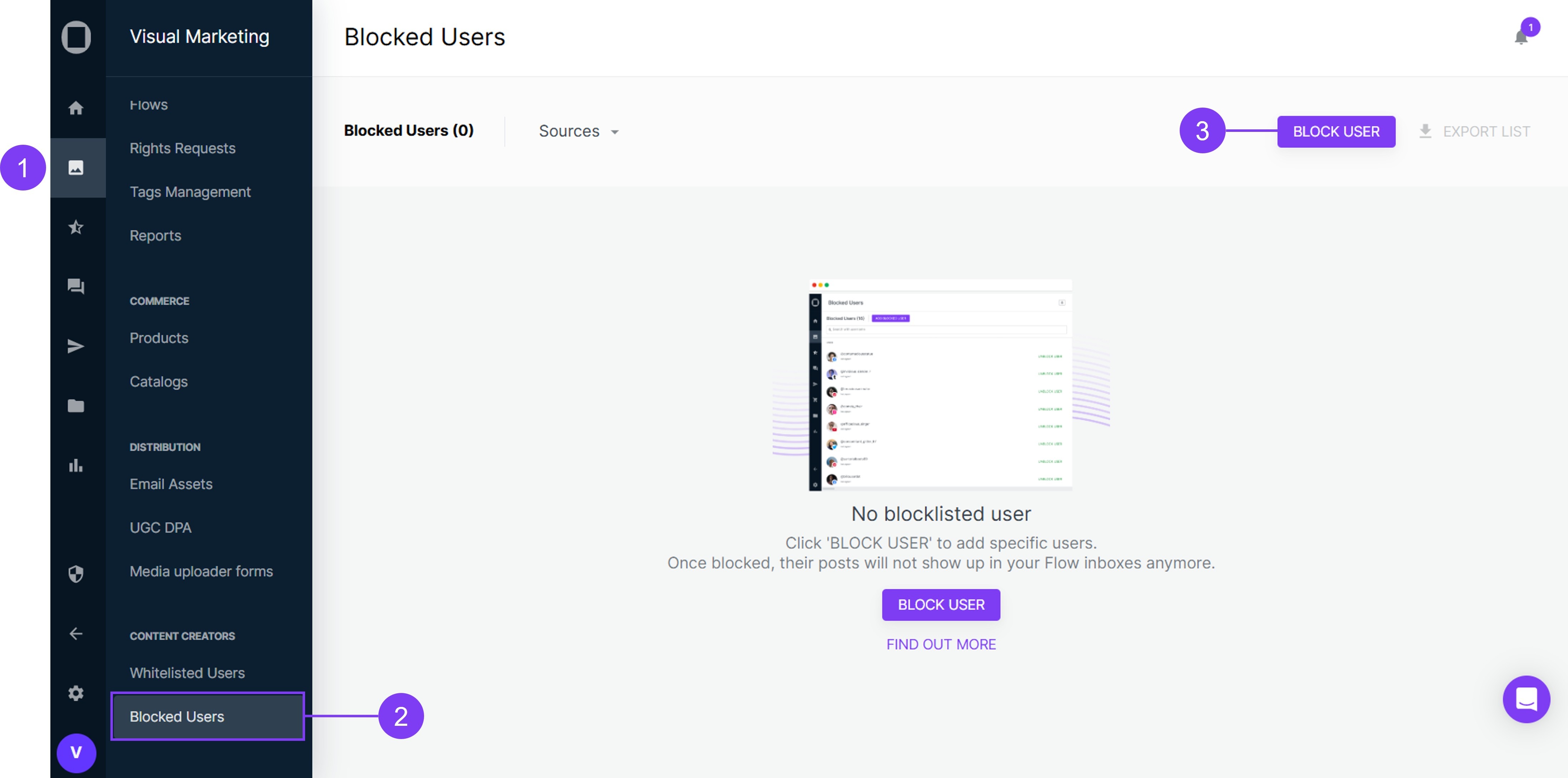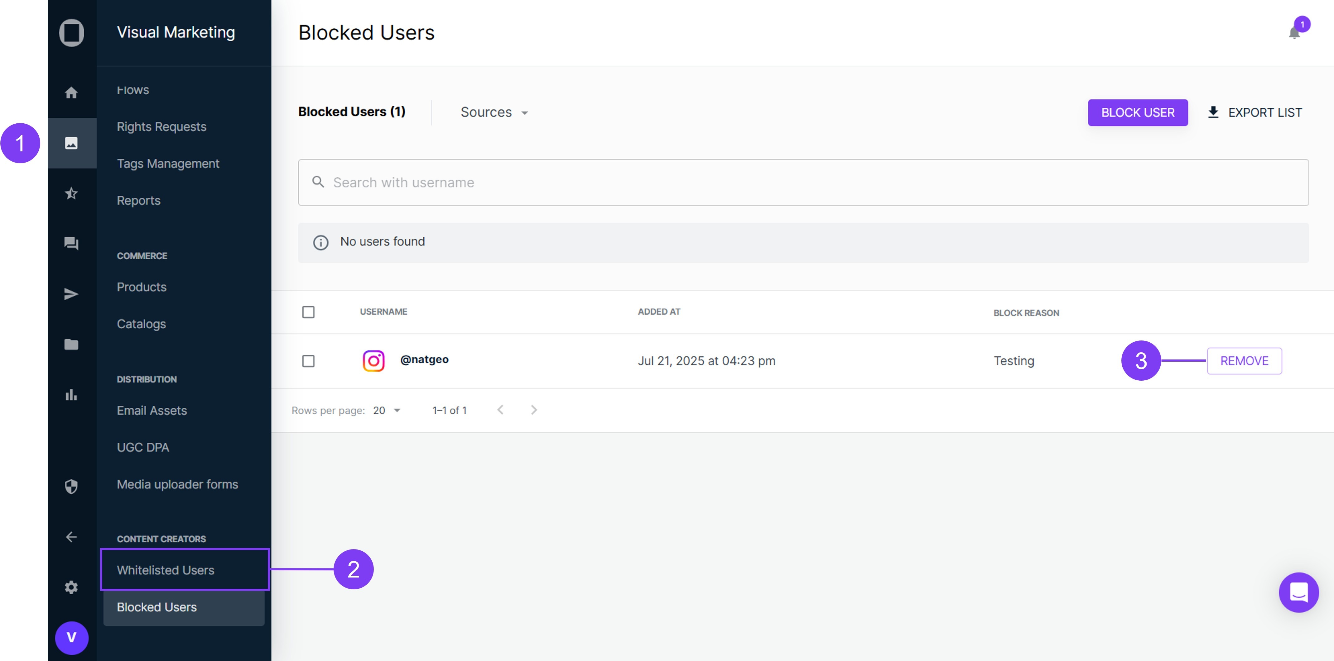 - Navigate to the Blocked Users section.