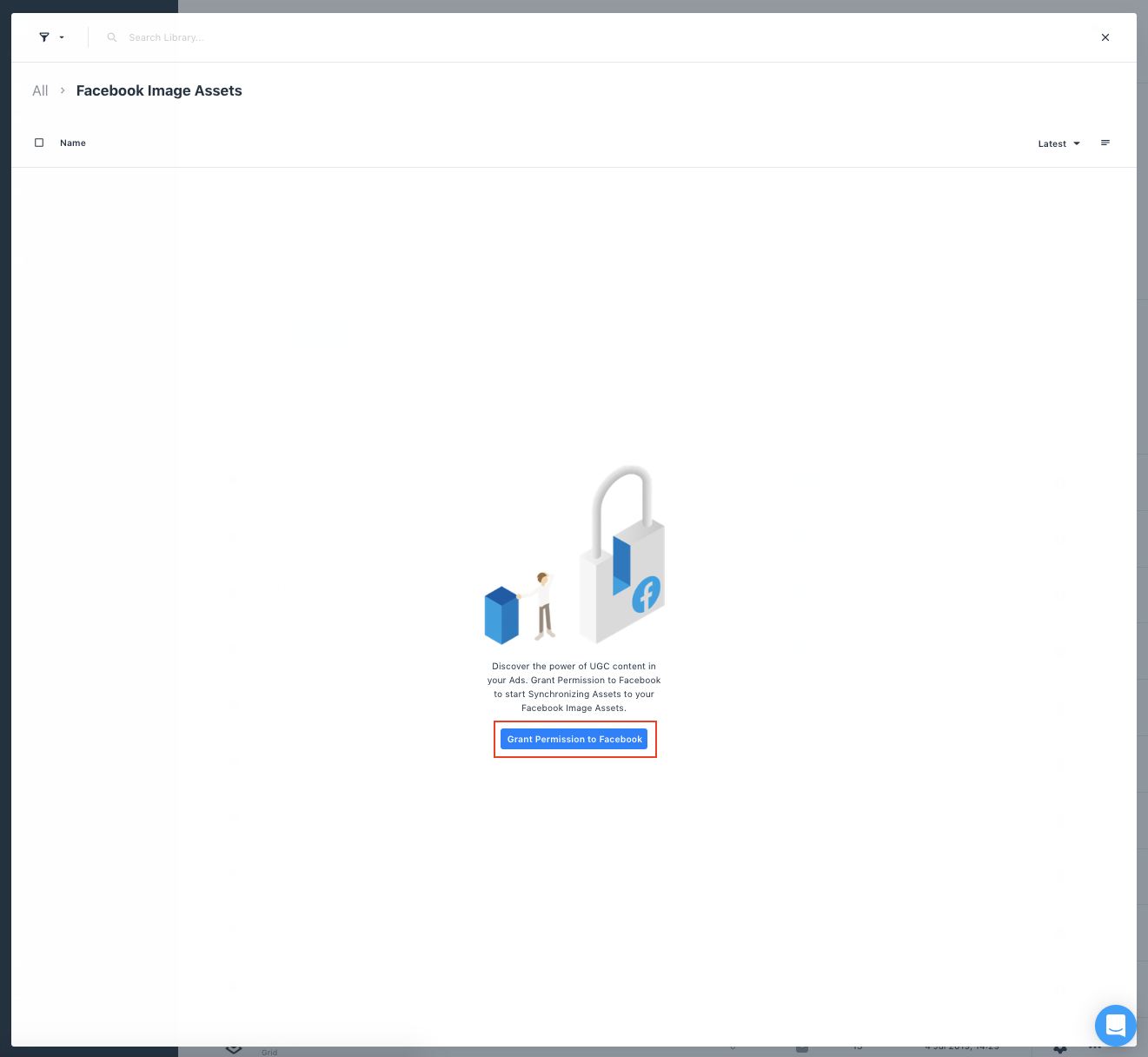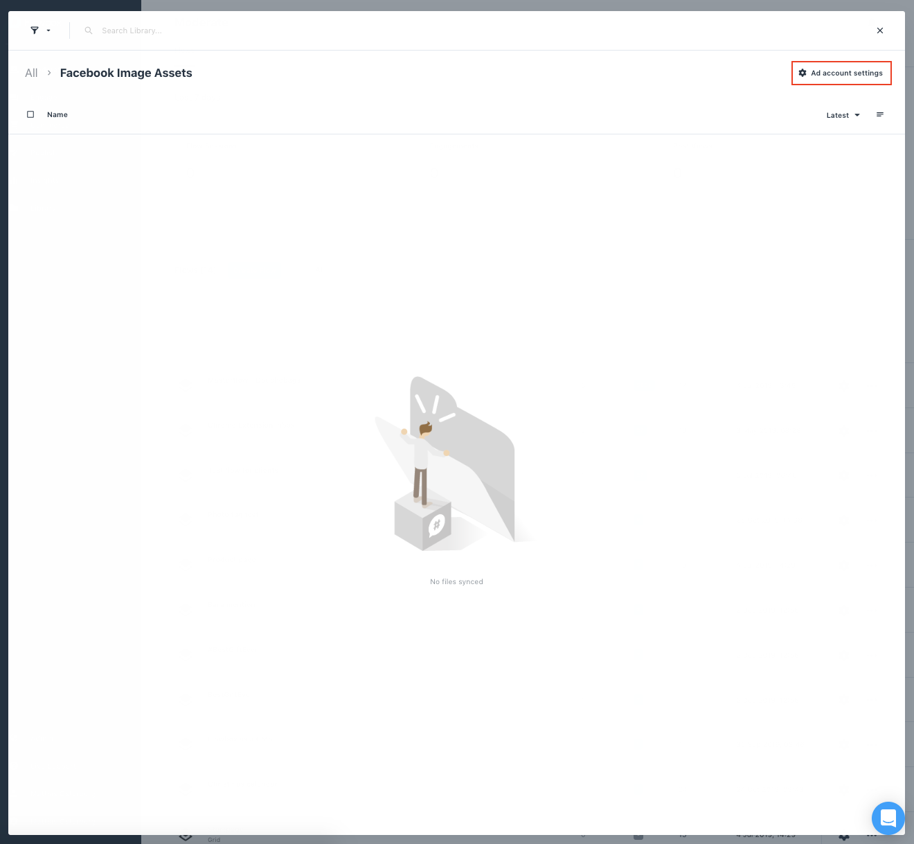 - It’s now time to select which Ad accounts you want to send images to. Open 'Library' again and click on 'Facebook Image Assets' in the left-hand menu.