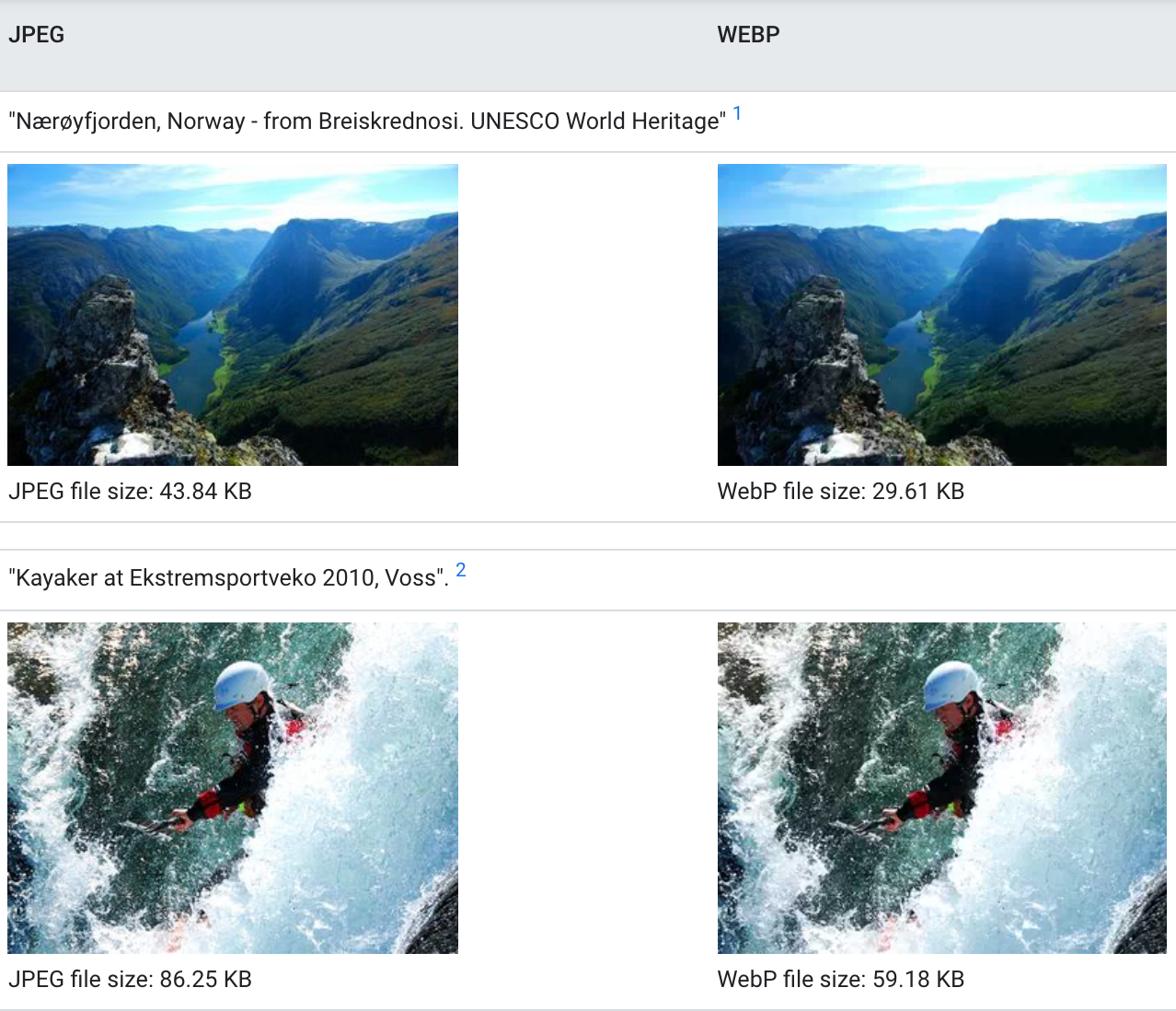 - Image files are served in the modern webP format, instead of jpg. This means that they are optimized to serve the best size for your customers' device type, screen size and resolution, and weigh significantly less than as jpg files. As you can see below, the WebP format offers 25 – 35% smaller file sizes with the exact same quality as jpg files.