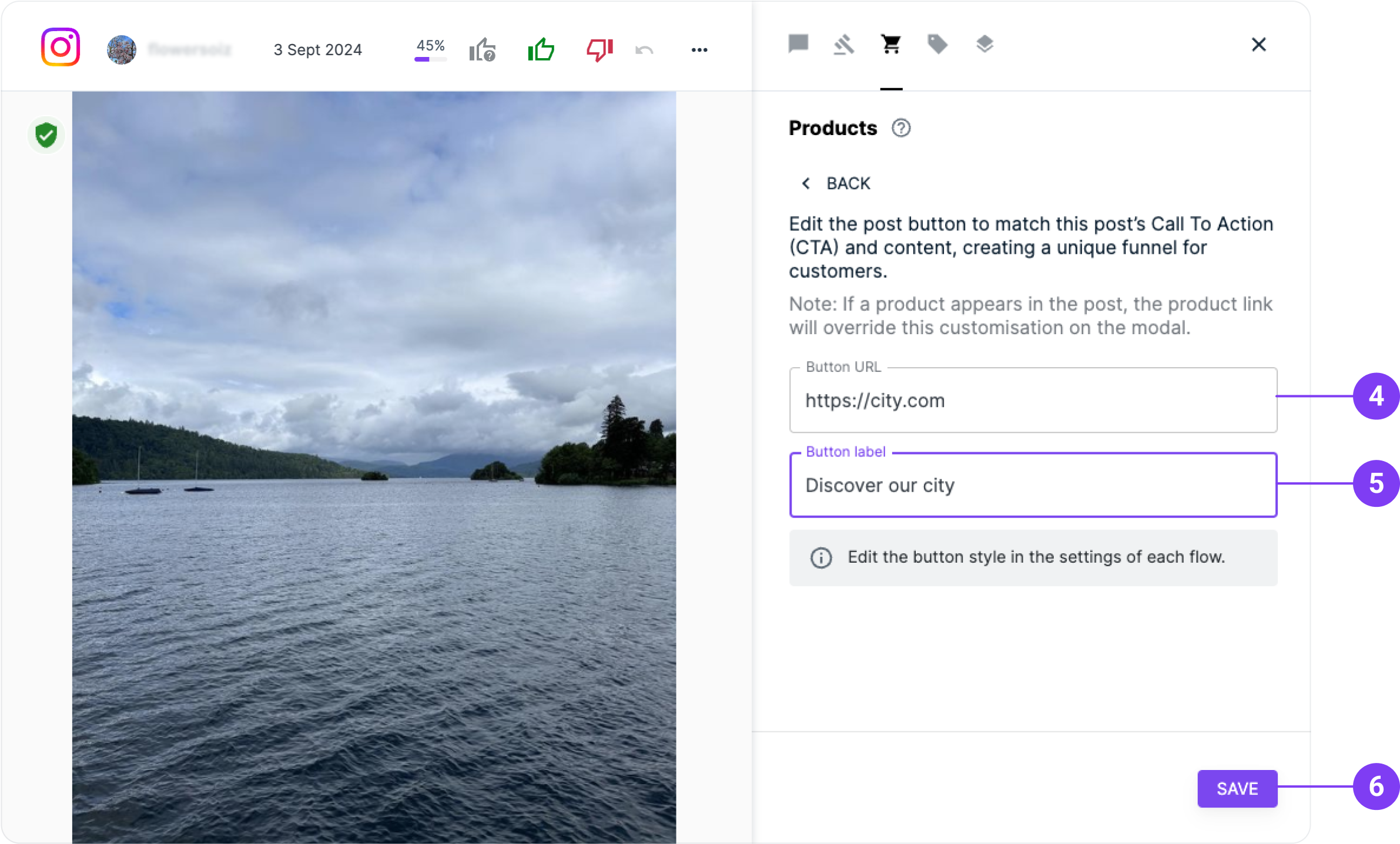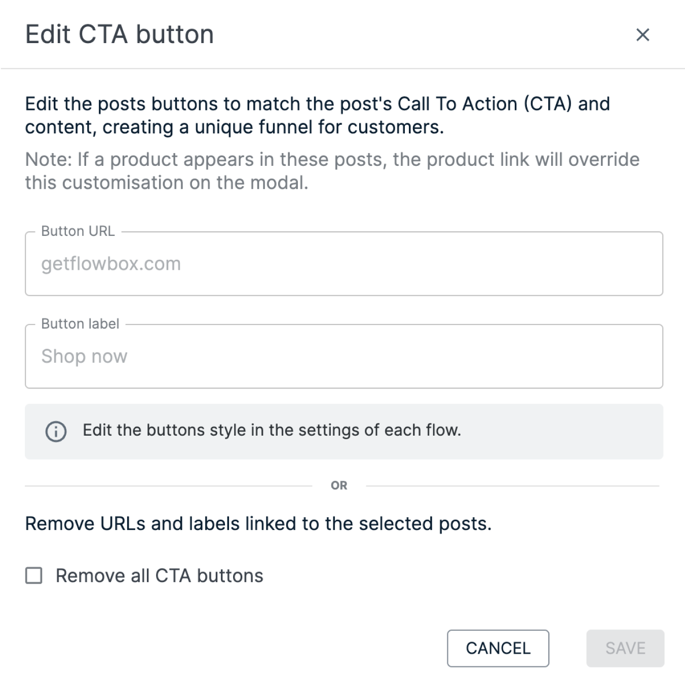 Note: If you want the same CTA button on a post to appear across all your Flows, we recommend editing it in your Masterflow.