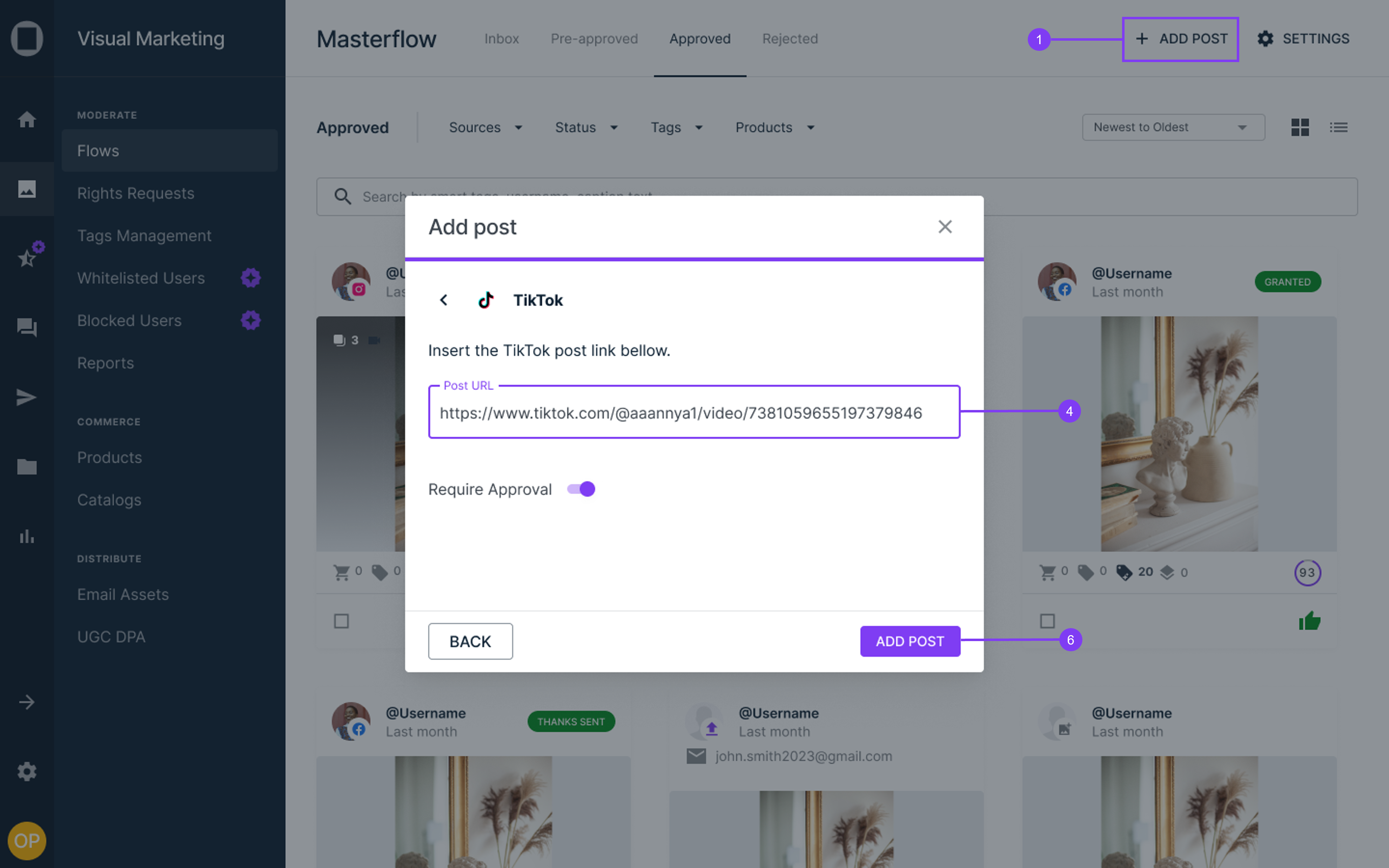 - Turning off the "Require Approval" button will send your content directly to the Approved tab in your Flow.