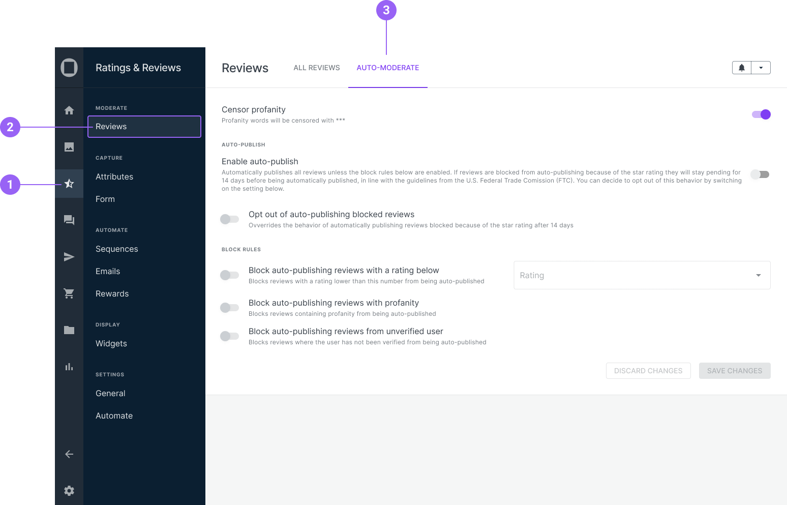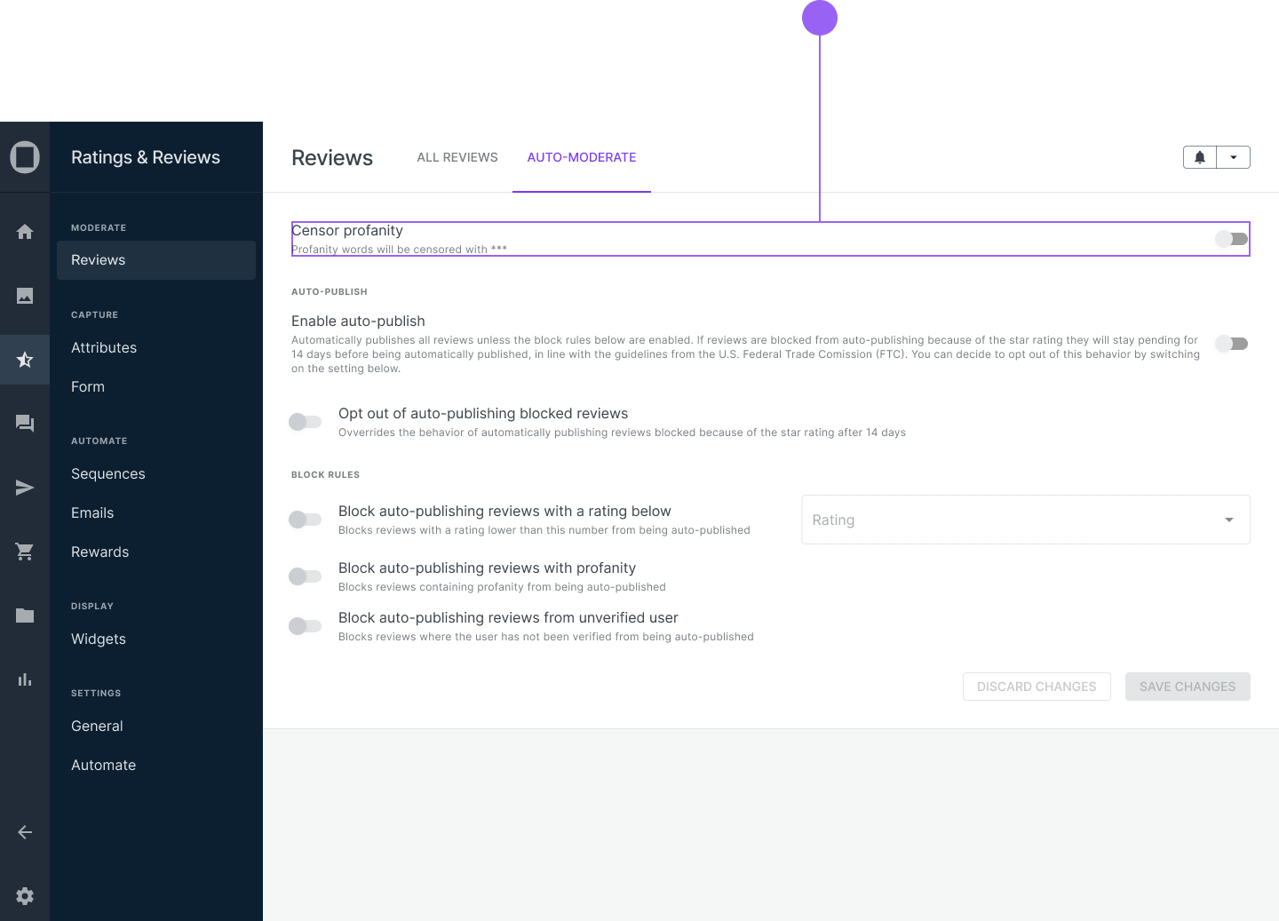 Toggle on to use the auto-publish block on reviews containing profanity.