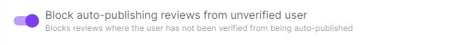 Blocks reviews from being auto-published where the user has not been verified. Check our guide to learn more about how to Send user verification emails to verify your reviews.
