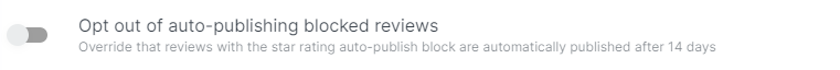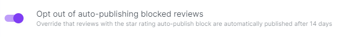 Toggle on to override that reviews with the star-rating auto-publish block are automatically published. In this case, auto-blocked reviews will not be published after 14 days.