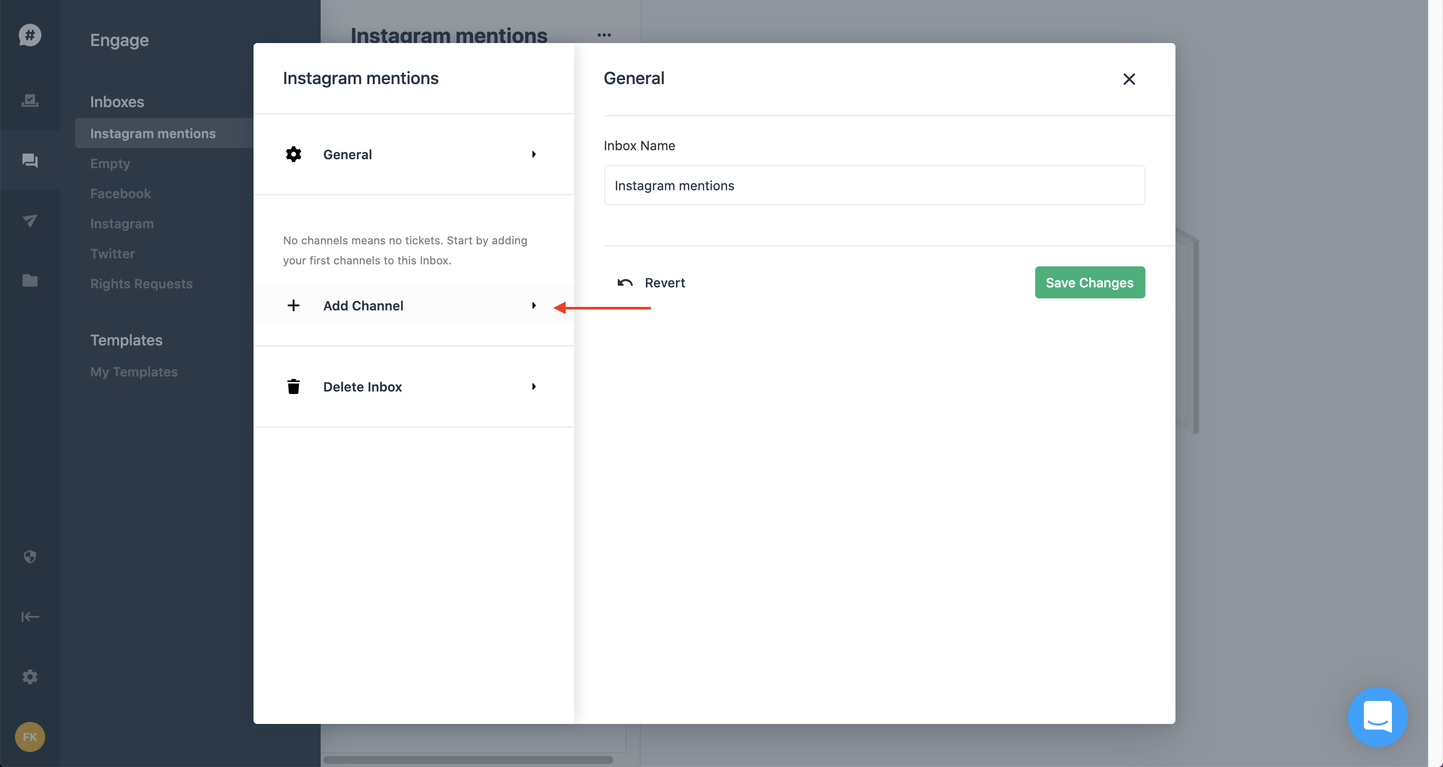 - In the modal, click on 'Add Channel'.
