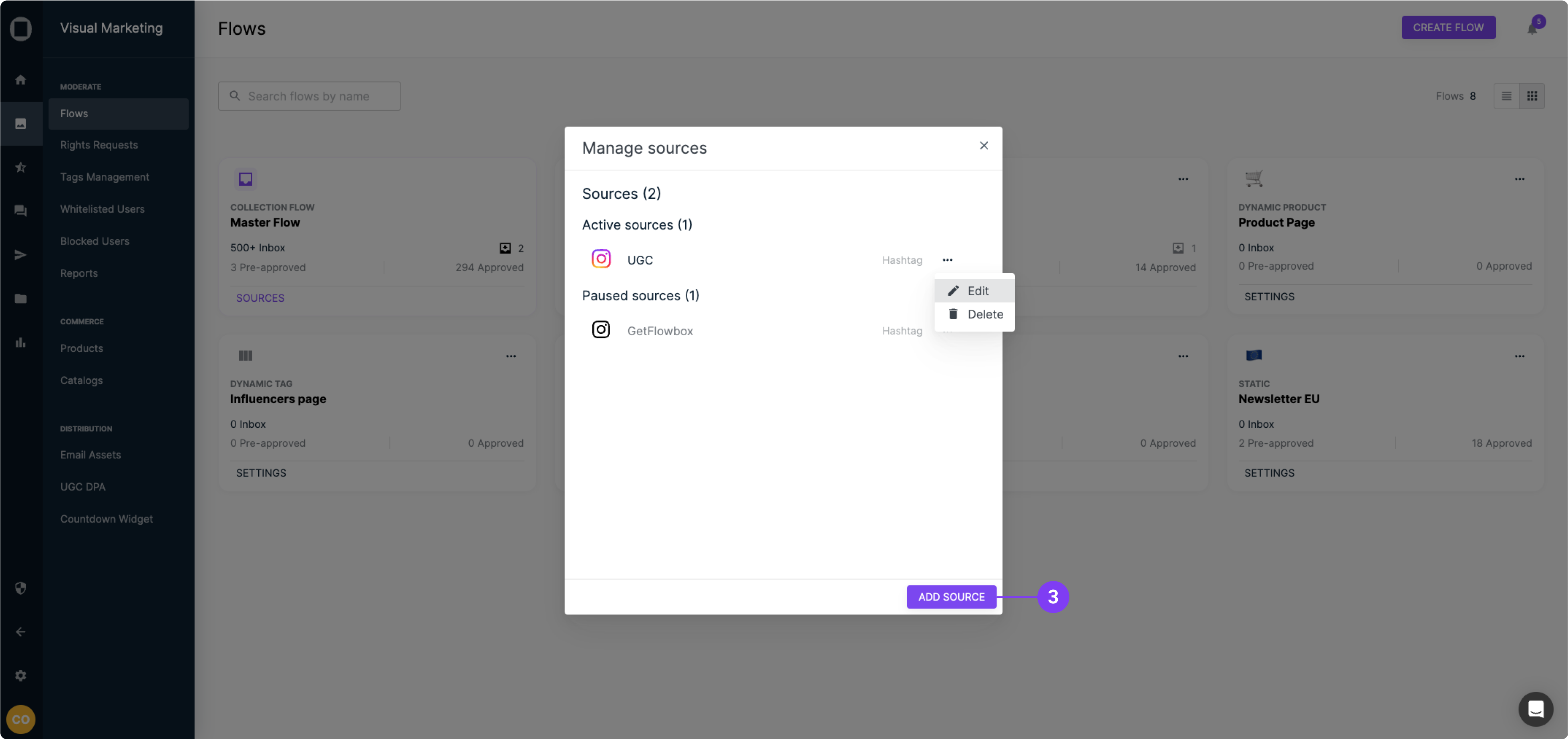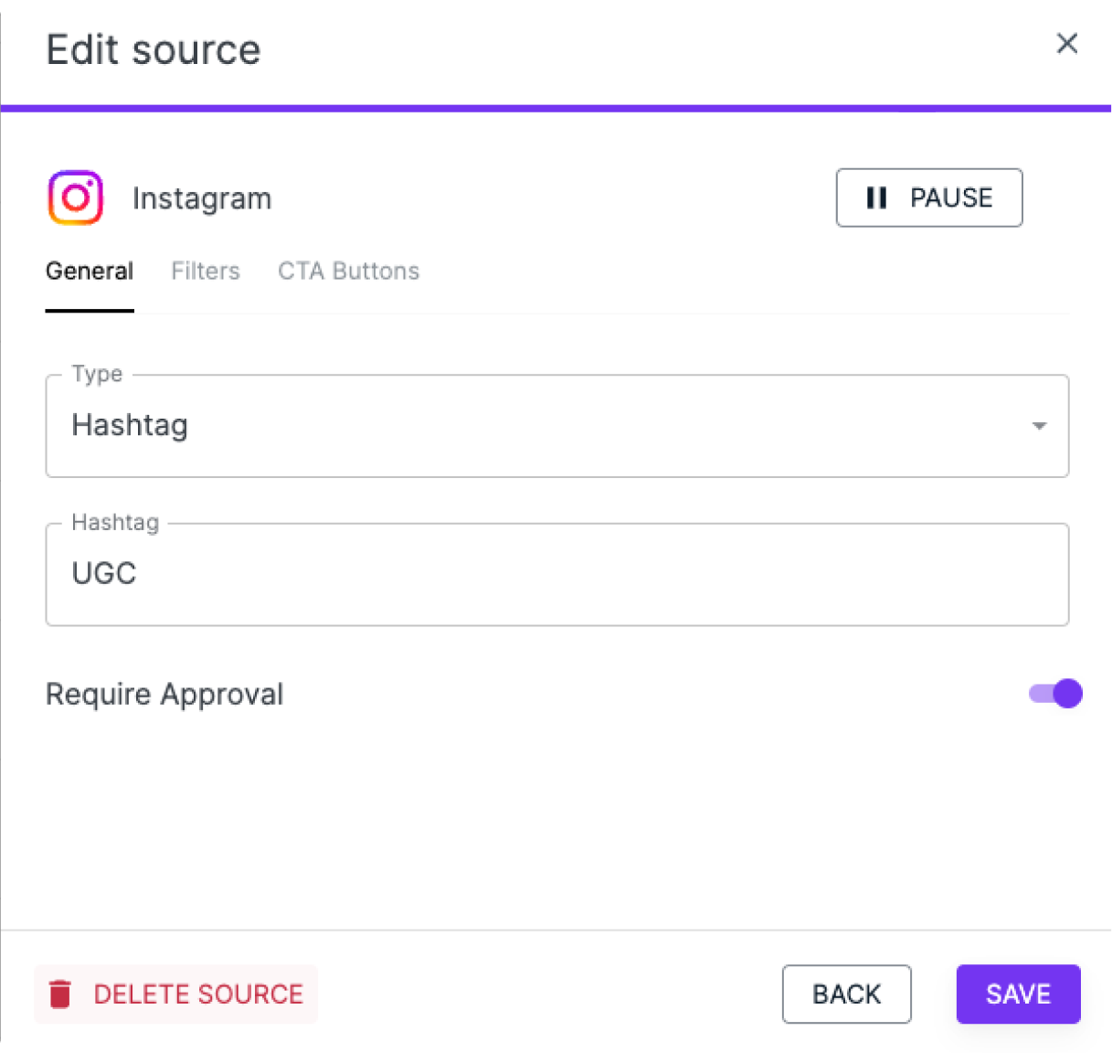 Once you've added a source to your Collection Flow, such as your Instagram account or a specific hashtag, you may want to edit or delete this source at a later date.