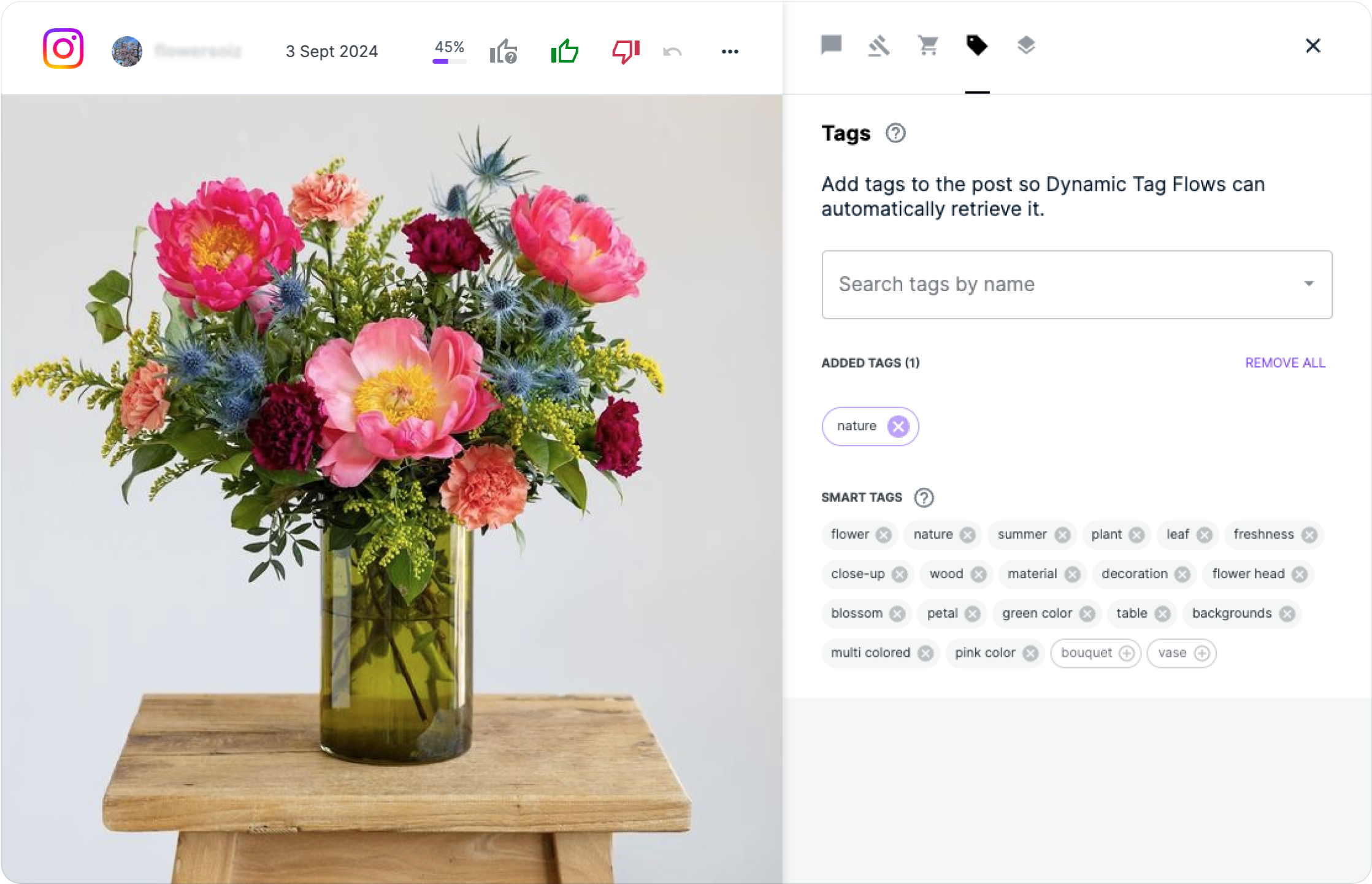 Smart tags, one of our AI-powered features, automate your content categorisation and moderation by identifying the key elements of your posts and smartly associating them with relevant tags.