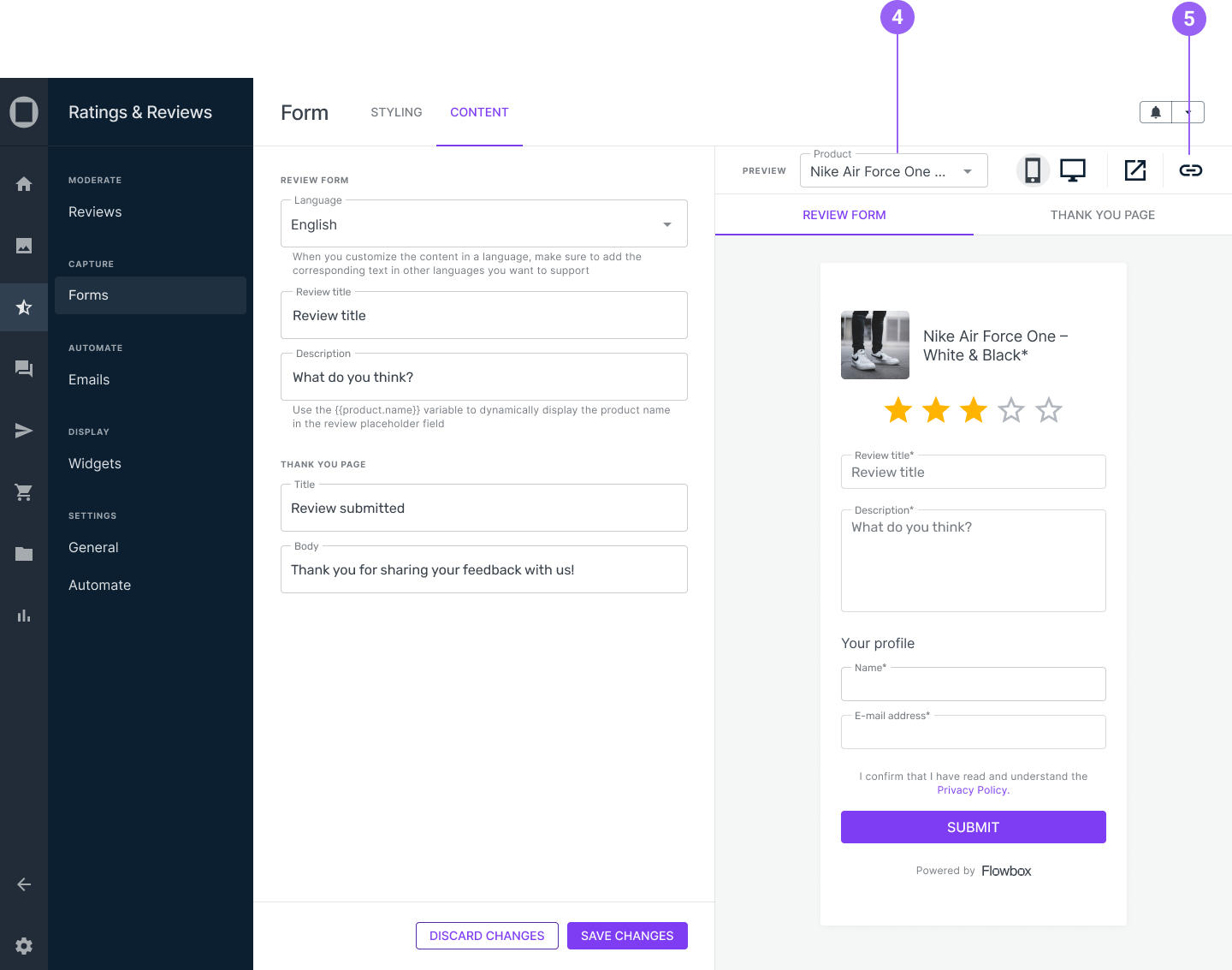 This feature allows you to generate a unique link that can serve as review invitations for your customers and you can integrate into your call-to-action (CTA) buttons, seamlessly redirecting users to the appropriate Product Review form while automatically populating it with customer data.