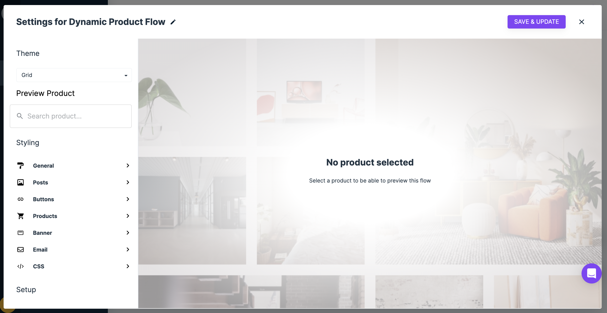 Dynamic Product Flows will search for posts that include a specific product across all the existing Static Flows in your account. Keep in mind that for Dynamic Product Flows to work, you need to have had assigned products to posts. Otherwise, the Dynamic Product Flow will have no content to display.