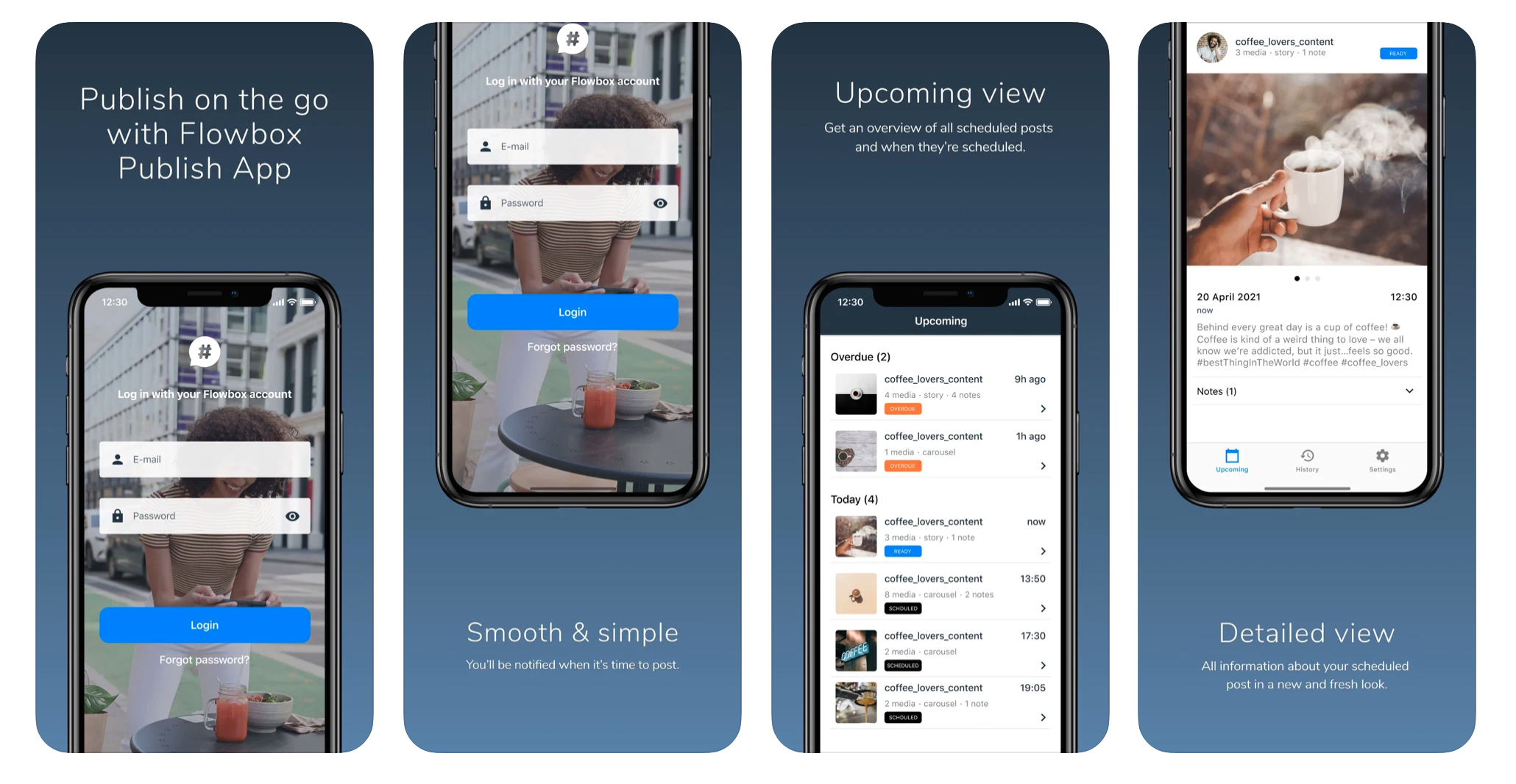 The Flowbox Android app provides support for our clients to publish posts to Instagram on the go.