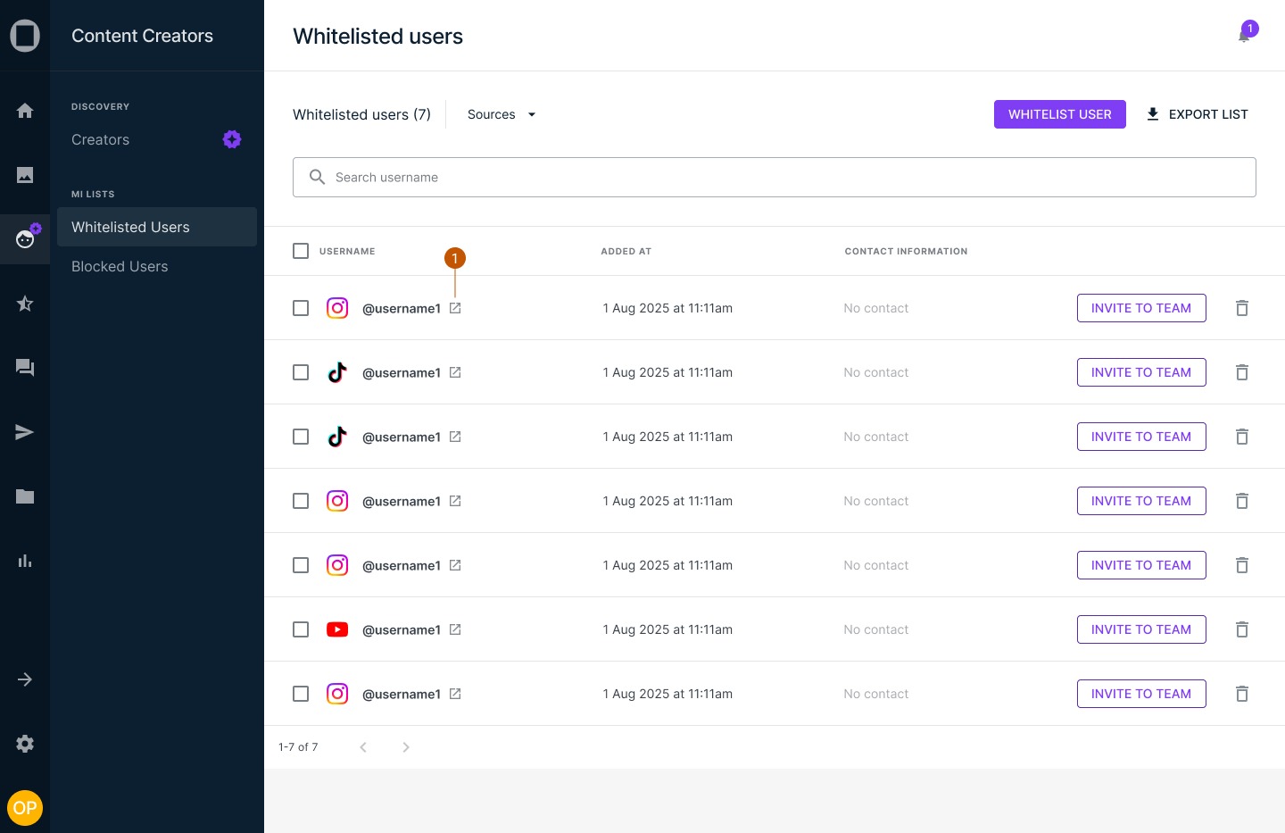 Once completed, the status of the whitelisted content creator will automatically change to Invite Sent.