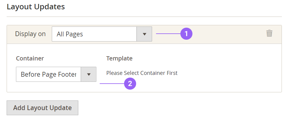 In the Layout Updates section you can select the placement in which the Widget will be displayed. Click on the "Add Layout Update" button, where the following dialog will be displayed: