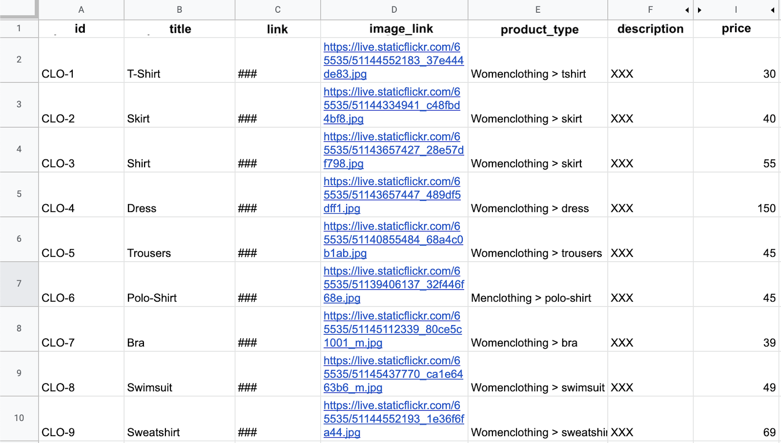 Note: It is crucial that the attributes are named accordingly to Google’s product data specification. For example, a product identifier can be represented as <g:id> for XML feeds and "id" for CSV feeds - attributes which are not specified in the specifications provided above or attributes with mistyped names (e.g. <vendor_ID>) will not work.
