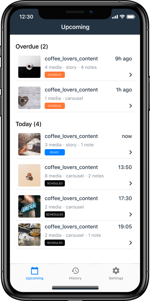 - When it's time to post, you will receive a push notification in the Flowbox Publish iOS app.