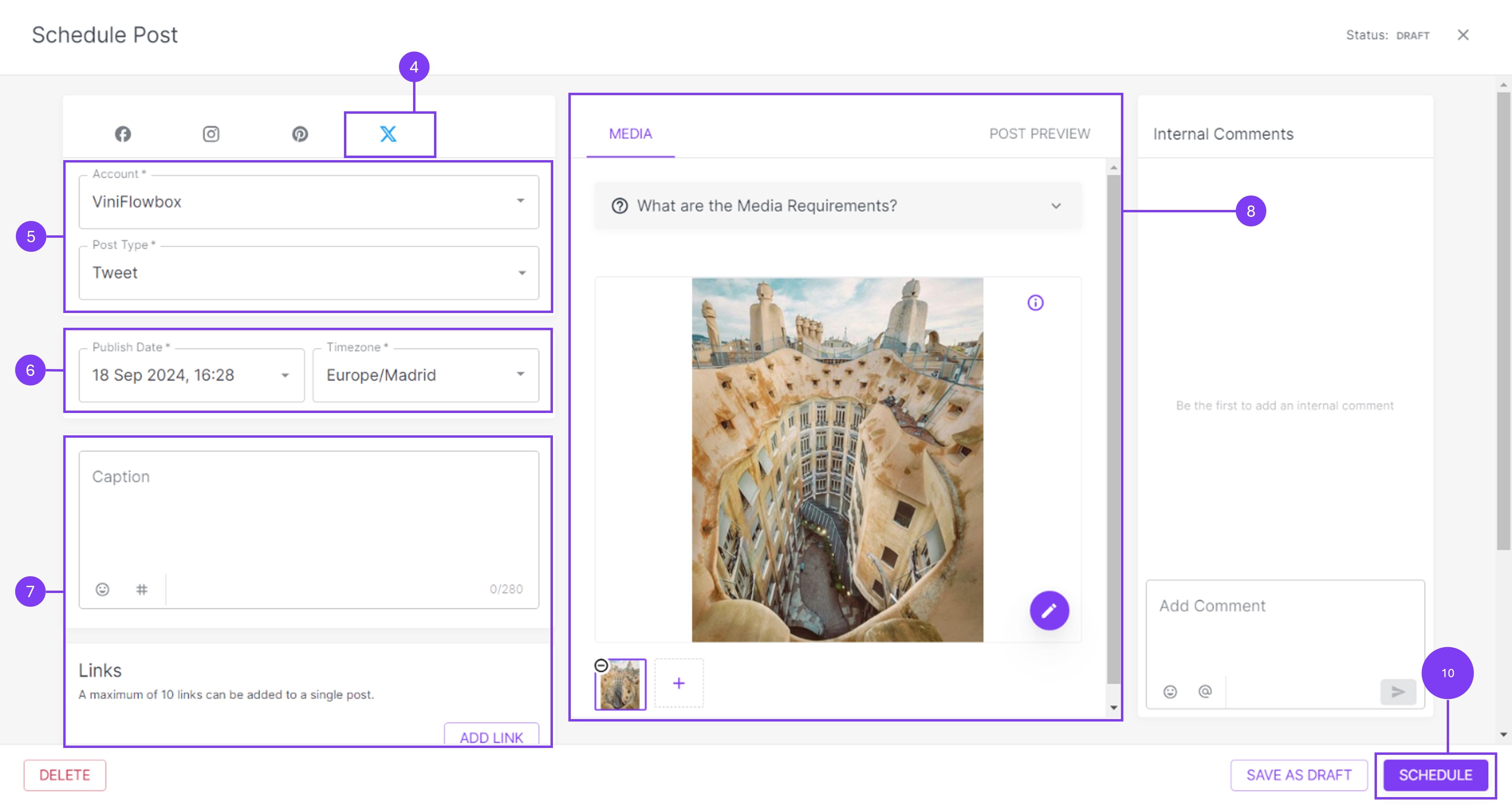 Flowbox supports X (Twitter) collection, customization and publishing. This article covers all the Flowbox features available for creating and publishing Tweet posts on X.