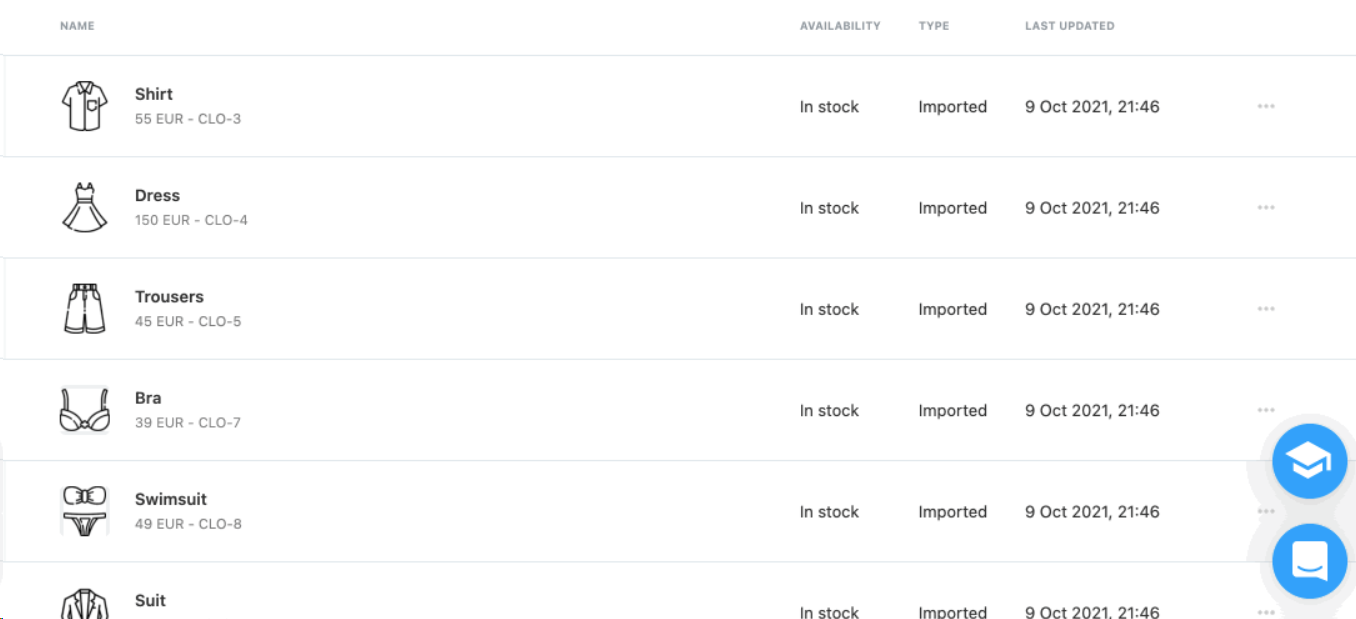 All of your imported products will be available in this window: