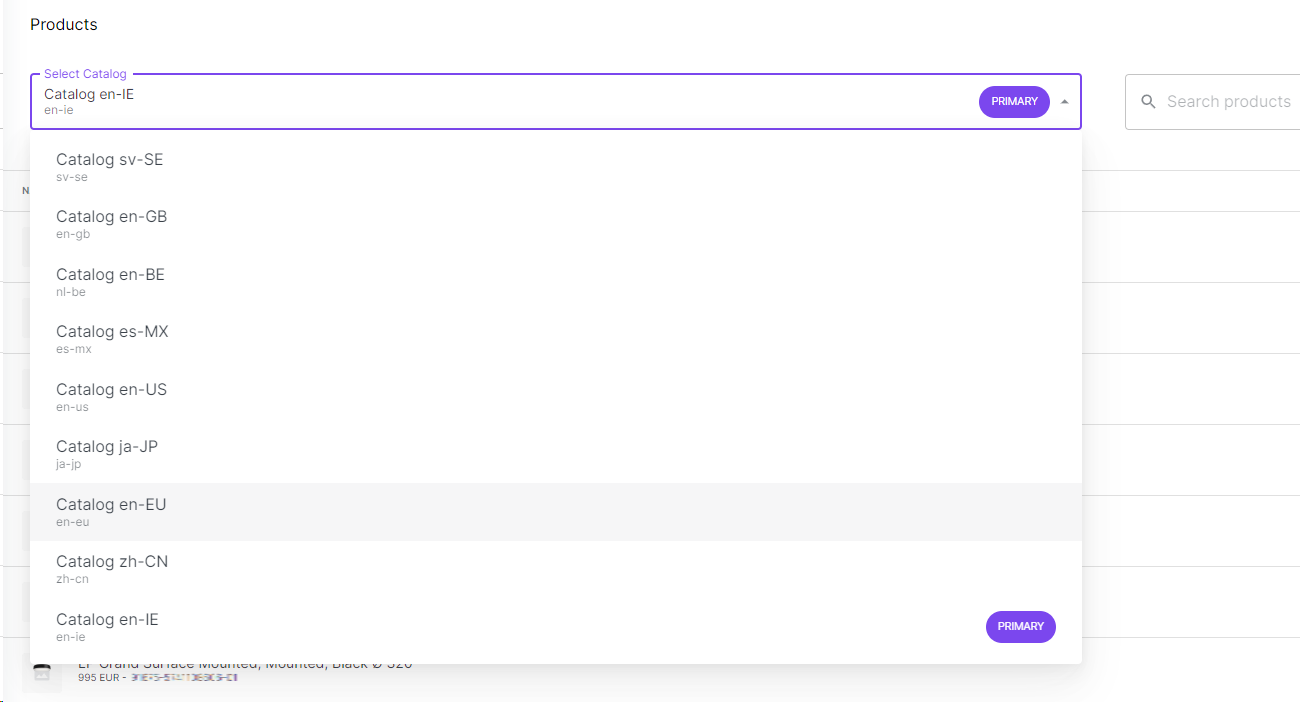 You can also filter the products by your available Catalogs, and also search for a specific product by their identifier or their name.