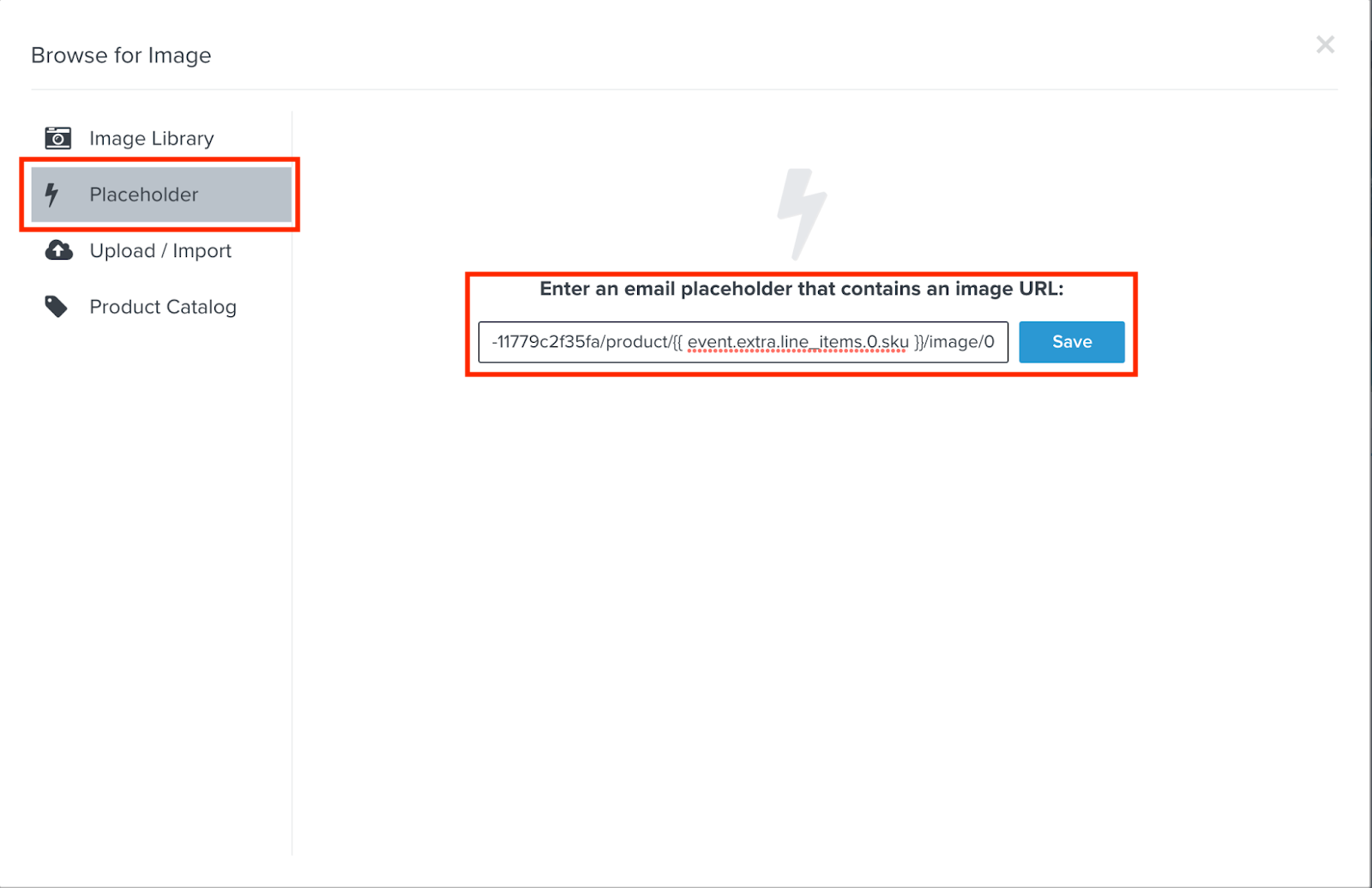 - Select ‘Placeholder’. (Note this will not display any content in your email template until you open up a preview mode).