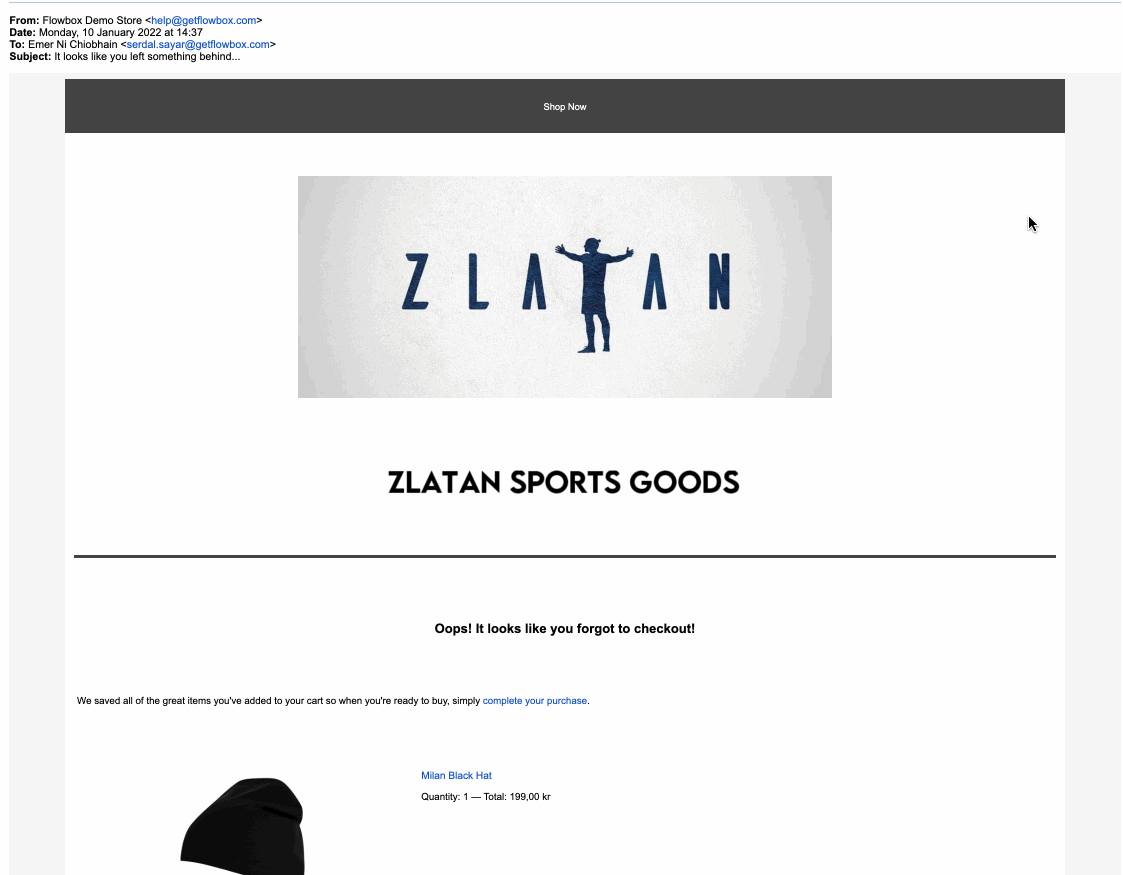 Flowbox Email Assets work well in abandoned cart emails, but can also be used to enrich other campaigns including abandoned browse, order confirmation, complete the look, etc.