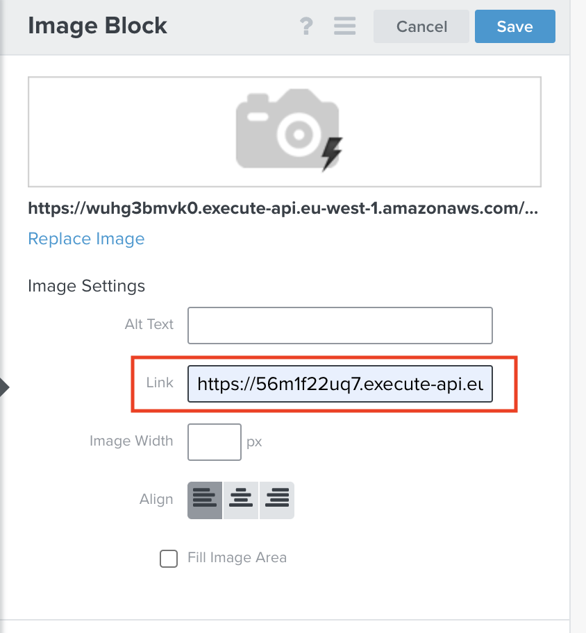 - Click ‘save’ and then add your Email Asset link in the ‘image settings’ on the right hand side.