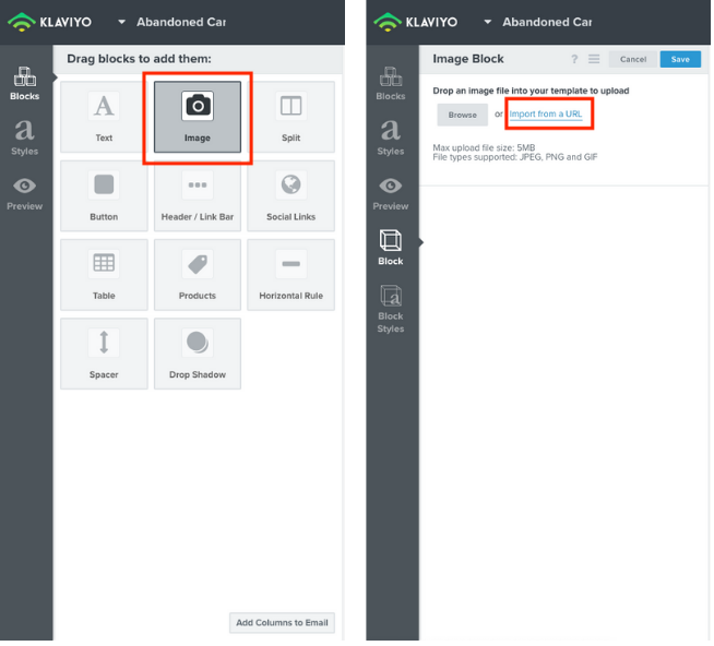 Once your email asset is created in Flowbox, you can now log into Klaviyo and input the links. In this example, we’ll be showing you how to embed your assets in an Abandoned Cart email.