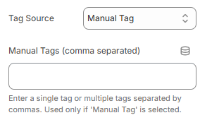 "info": "Enter a single tag or multiple tags separated by commas. Used only if 'Manual Tag' is selected."