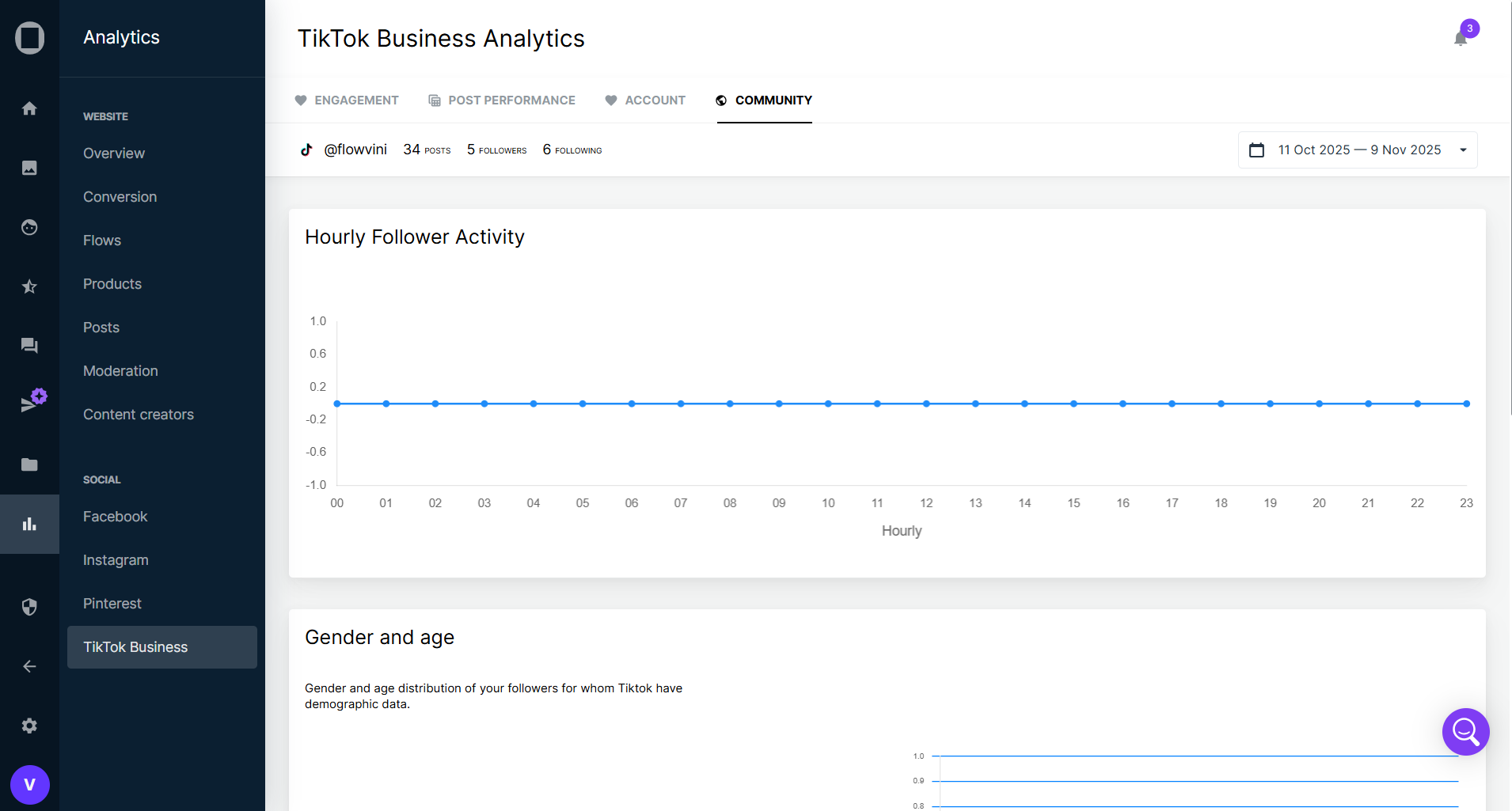 - Gender and age – Distribution of your followers by gender and age group