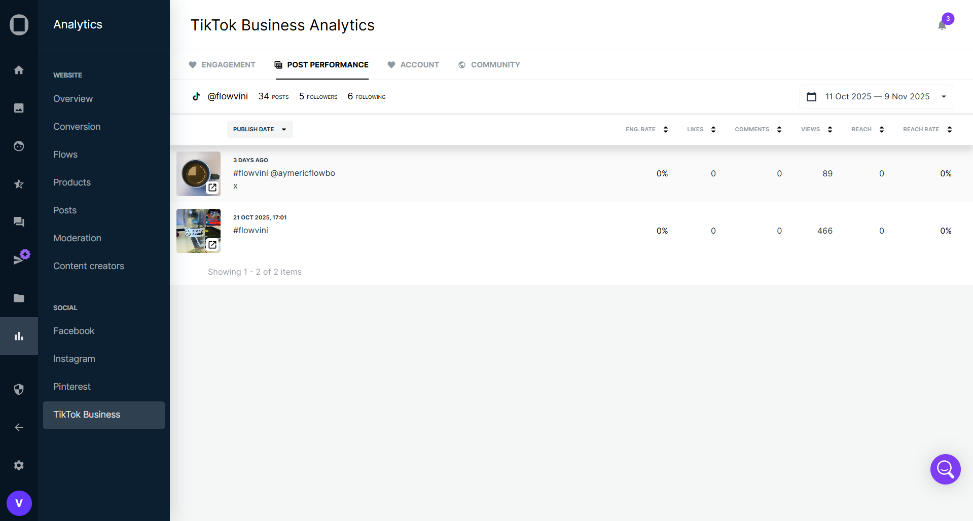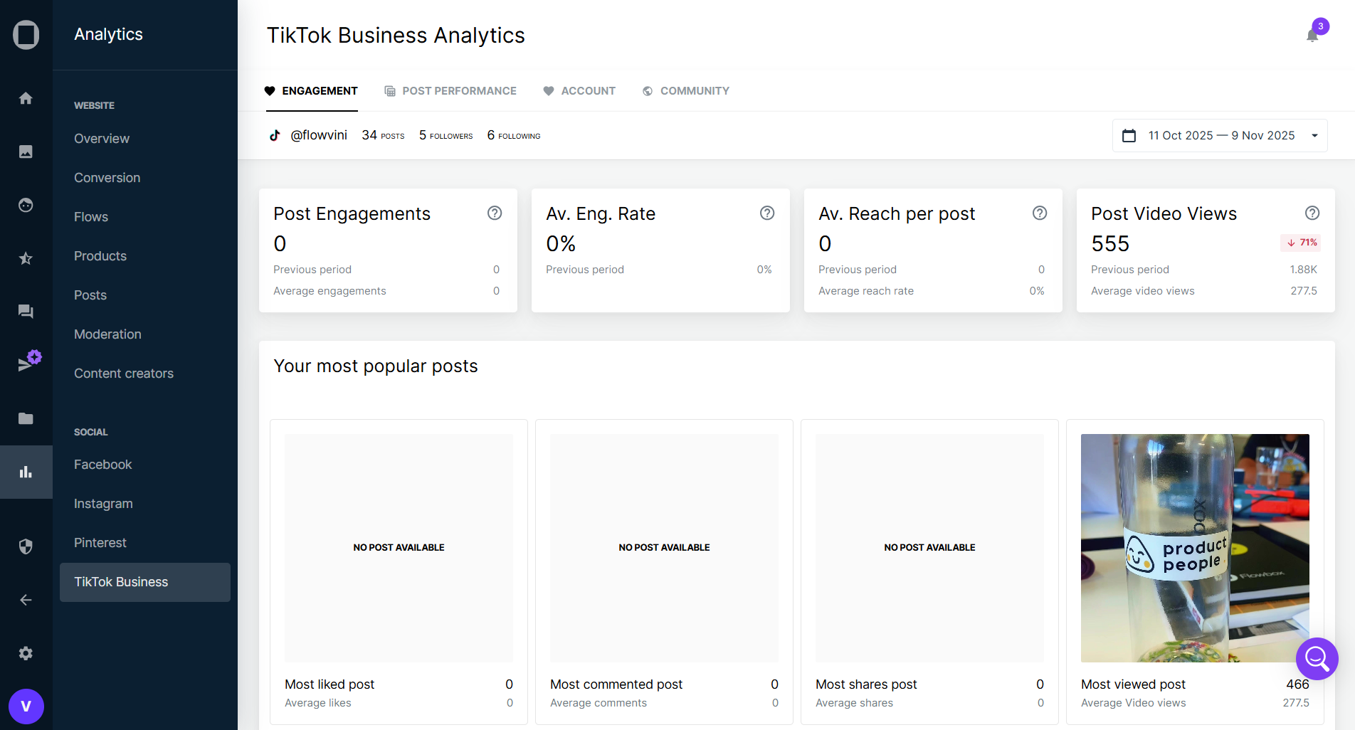 In this section, you’ll find metrics and insights about your TikTok or TikTok Business account. You can track follower growth, measure your reach, understand how your audience engages with your content, and identify which posts drive the most engagement. By analyzing these insights, you’ll be able to make better, data-driven decisions to optimize your TikTok strategy.