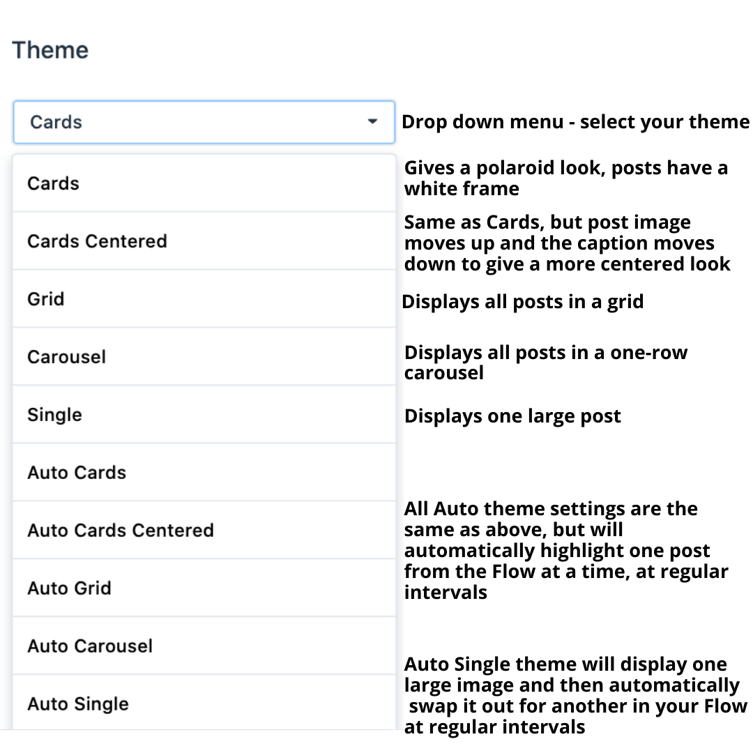 Flowbox offers a variety of style and theme settings to make it easy to customize your Flows.