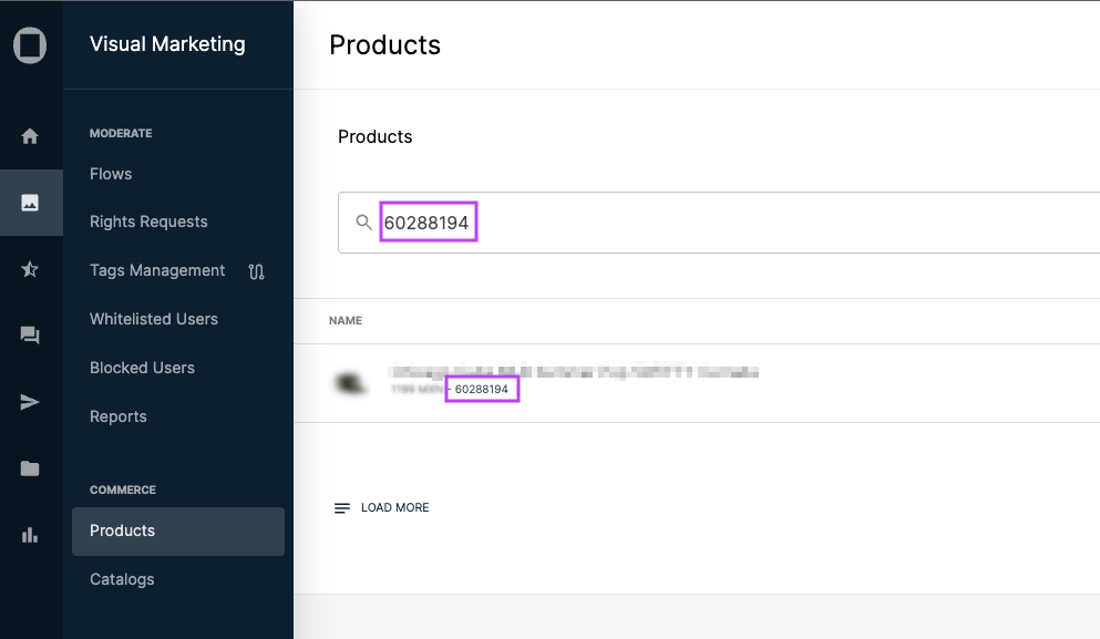 - Search for the product, either by its name or its ID.