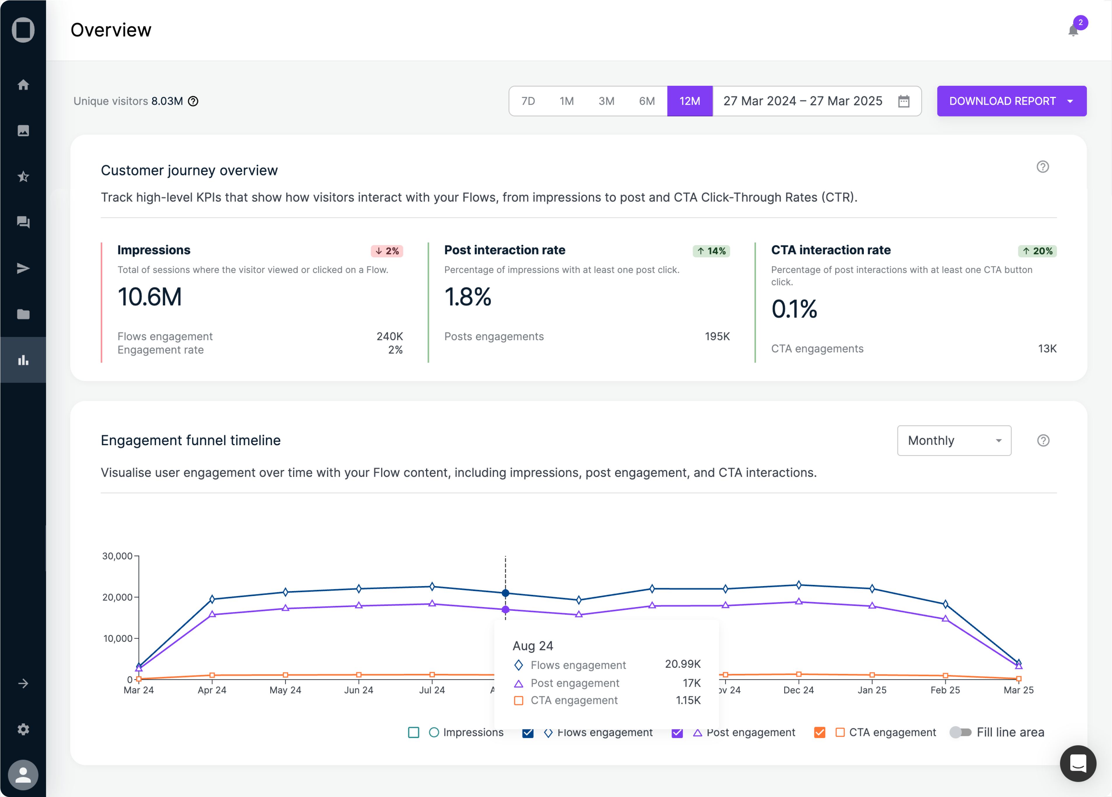 - Impressions β See how many visitors view your Flows.
