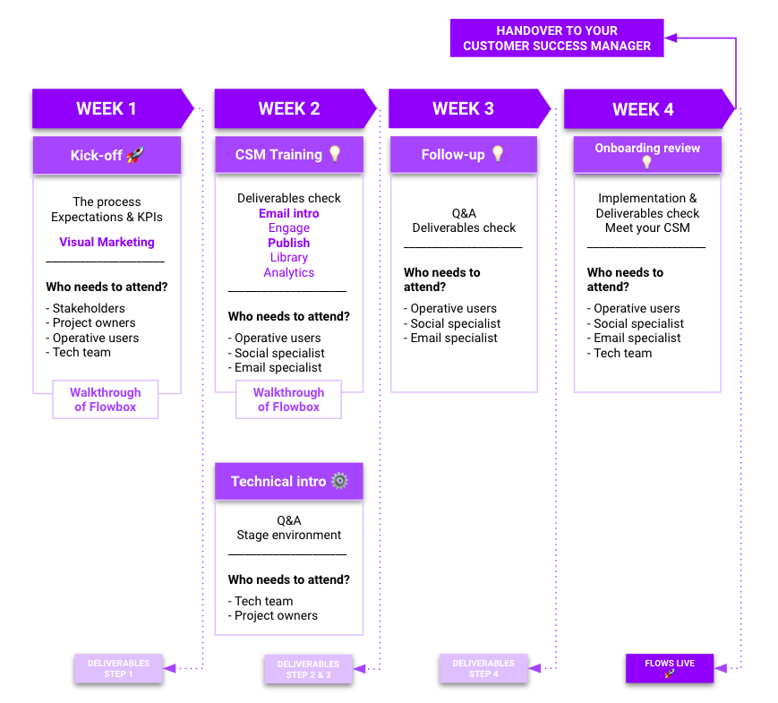Please take a look at the image below for a visual roadmap of the steps to go live with Flowbox.